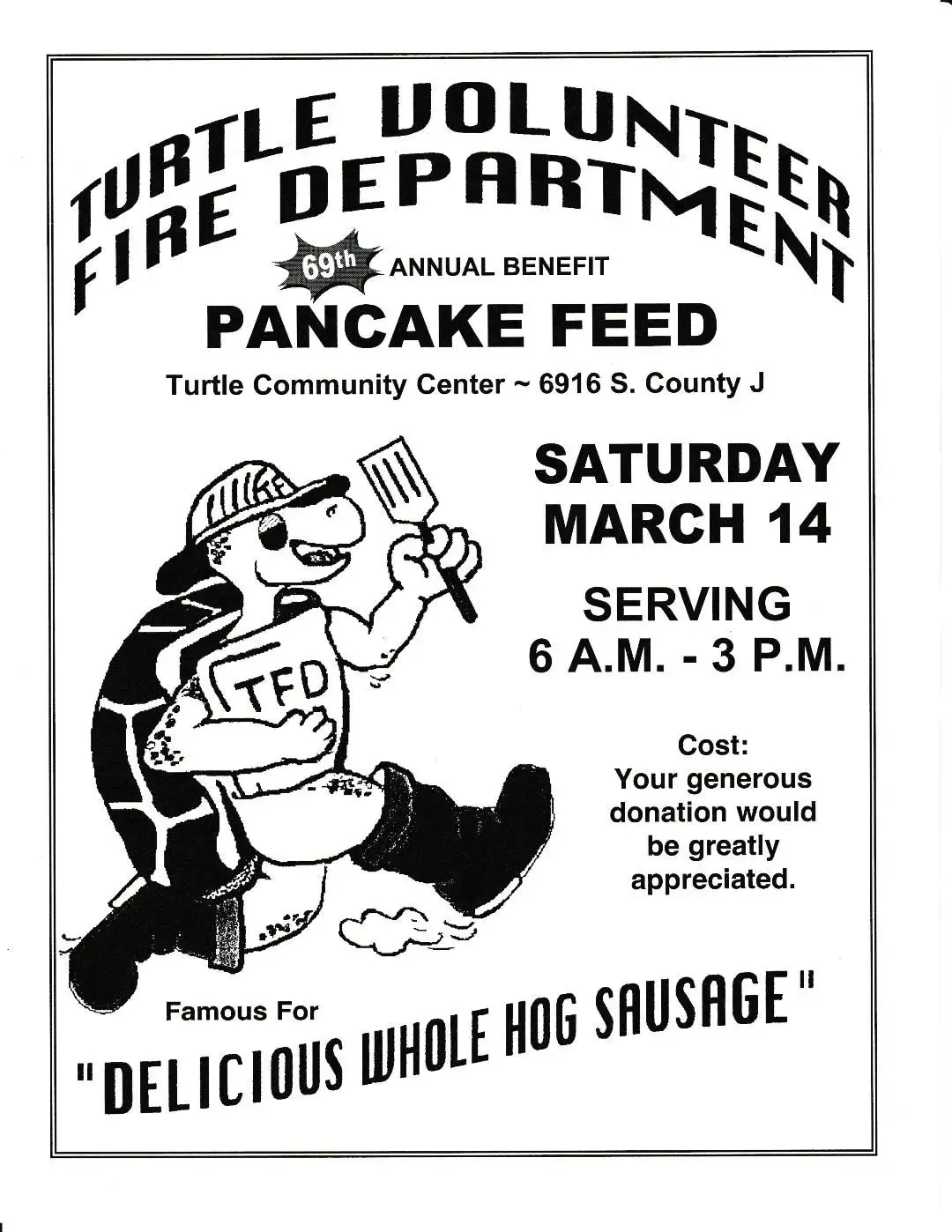 Join the Town of Turtle Fire Department for their traditional Pancake Breakfast.