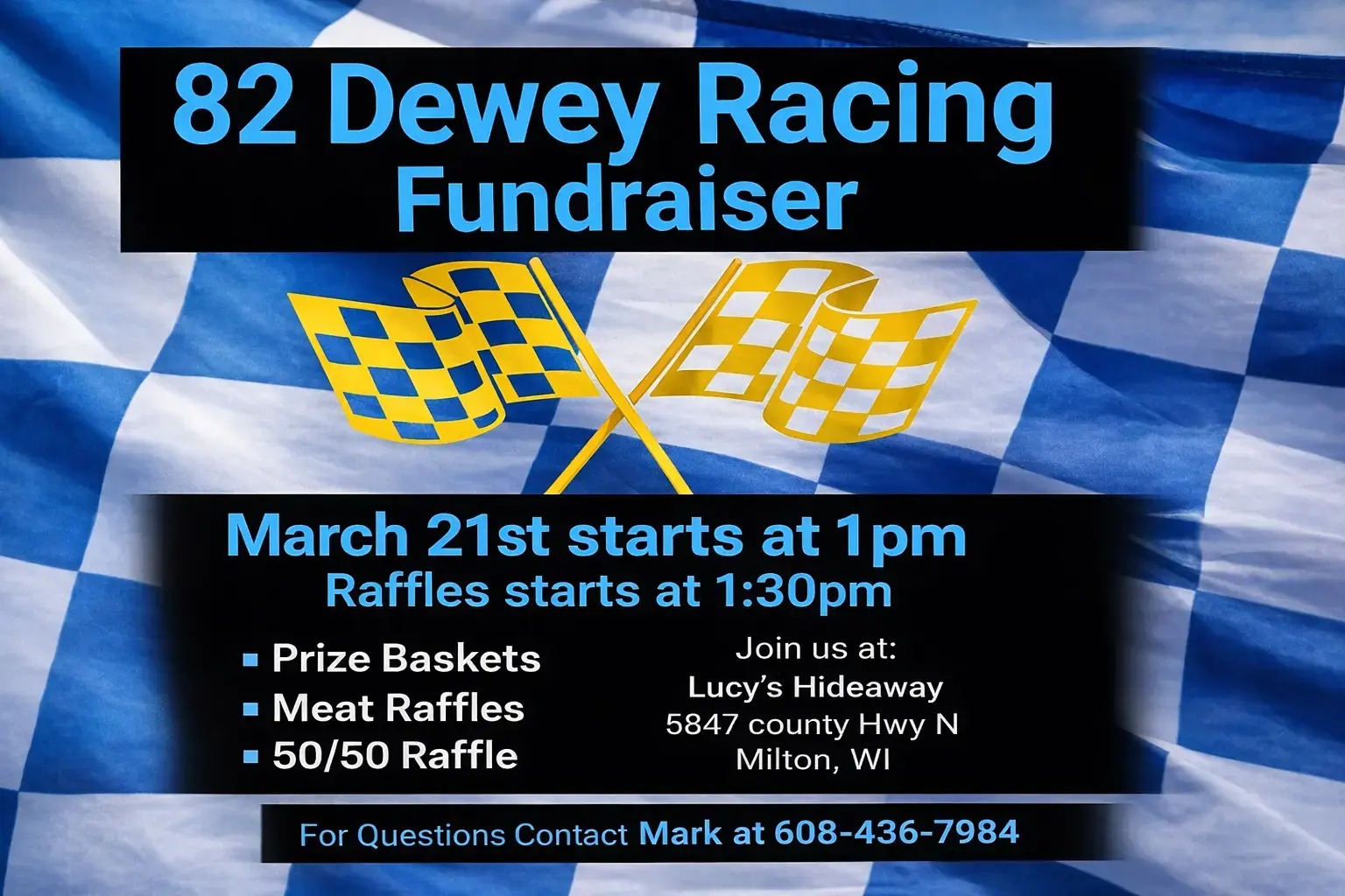Will have meat, prizes, and 50/50 raffles. Trying to raise money for a full race season. We race all over in Wisconsin and Minnesota areas. Every bit we get helps supports us to race the full season from May through October.
