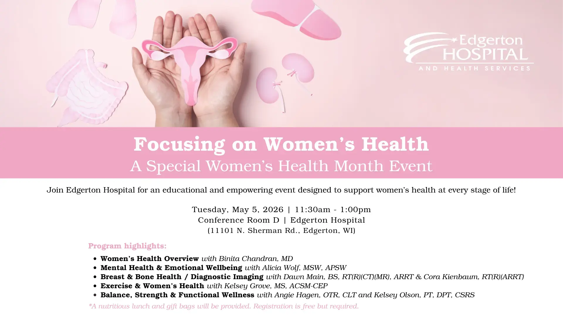 *Please register by visiting https://www.edgertonhospital.com/events/2026/may/focusing-on-womens-health/ to attend.*